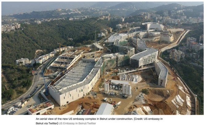 In Lebanon, the newly fortified $1 billion US embassy in Beirut stands as a pretty vivid representation of Western powers professed intentions to protect and control the country. This massive complex, strategically positioned and heavily secured, illustrates the real motives of Western involvement.